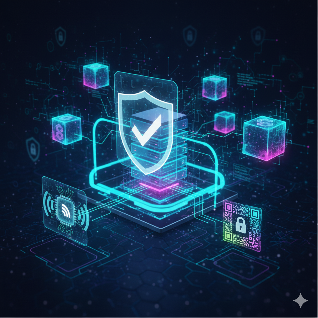 물리적, 시각적, 블록체인 기술이 결합된 다층 보안 시스템을 통해 위조와 복제를 완전히 차단하는 혁신적인 인증 솔루션을 만나보세요.